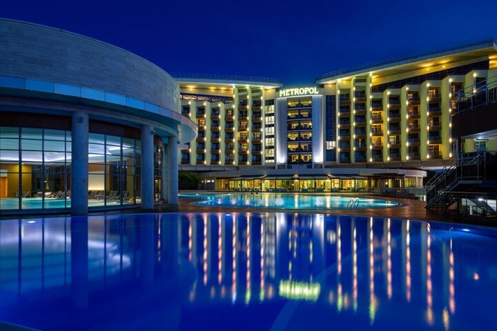 В отеле Метрополь Геленджик имеется все, не только для прекрасного летнего, но и для всесезонного отдыха: несколько ресторанов и баров, открытые бассейны, аквапарк, крытый бассейн с термальными зонами, детская комната, спа-комплекс, фитнес-центр и многое другое.